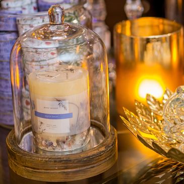 Hand-poured candles crafted with nature’s loveliest elements that shine through the candle when lit!